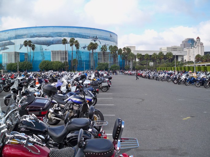The parking lot began to fill up early at the Long Beach Convention Center as motorcycle enthusiasts of all kinds rode in to catch an early glimpse of what manufacturers are offering for 2010.