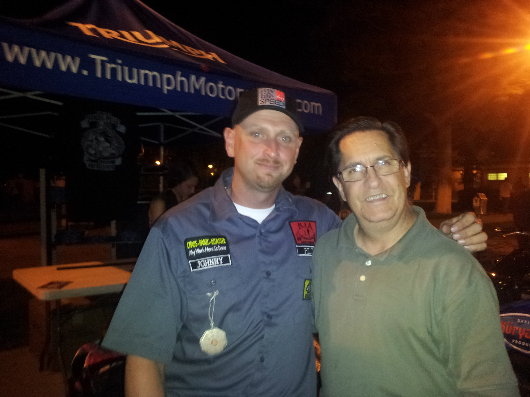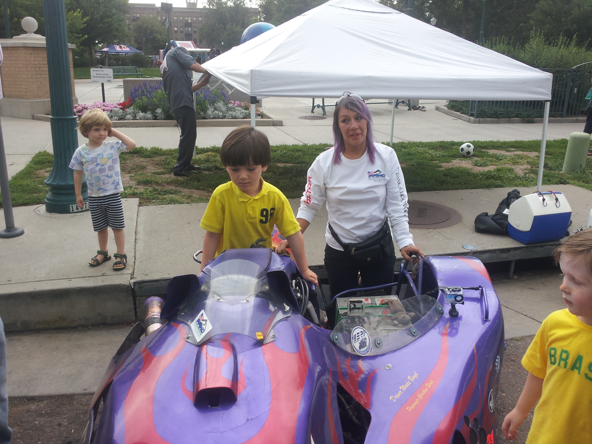 A phone call to the powers that be confirmed Wade was the top qualifier; nothing to do now but prepare for Fan Fest in downtown Colorado Springs. Even though we were not fast qualifier (each top time from all classes are required to display their vehicle), fellow competitor Hans Schultz had bought a stall so all three machines in the sidecar class could be displayed together.