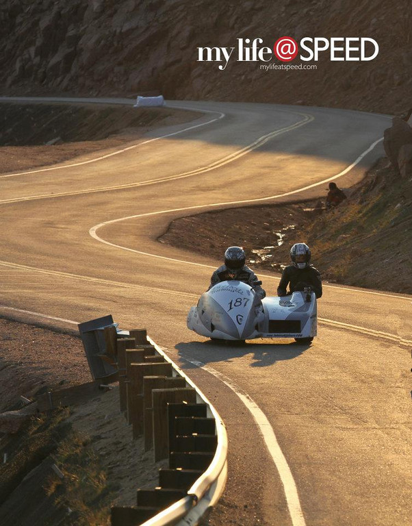 The ability to have a few drinks really opened things up though. You weren’t thinking about how many times you asked the same question, you were just talking to people. Instead of being paranoid that climbing kids are going to bend my shifter rod or scratch the paint, I’m climbing onto the bike to pose with them for pictures. This year was also different in that I got to meet some really nice folks. One was a couple all the way from Japan. They had very limited English, but we could surmise that the husband had race the Isle of Man TT in 2007 on a Formula 2 LCR machine, and was some kind of organizer for the Japanese sidecar championship. In typical understated Japanese style, you could see his passion for the sport and for the Pikes Peak Hill Climb. The other conversation was with the finish line flag man, who I’m embarrassed to admit, I can’t remember his name. During practice though, he is always super enthusiastic when we come by, and waves in an exaggerated manner as we drive past on the return runs. He stopped by our booth and gave some very sincere appreciation for our outfit, and for what we do as sidecar racers. He even admitted as to having a pic of our machine at his home. The feeling was actually deeply personal for me, as I often forget about the way things look from the outside. I consider our efforts to be big, but they are efforts we do daily, so they seem normal. Seeing someone recognize our effort like that reminds me how much of an effort it is… and how little credit I give myself. I’m so busy looking for the next step forward; I never look at how far we’ve come. The primer grey bike with the old 750cc engine is barely recognizable now.