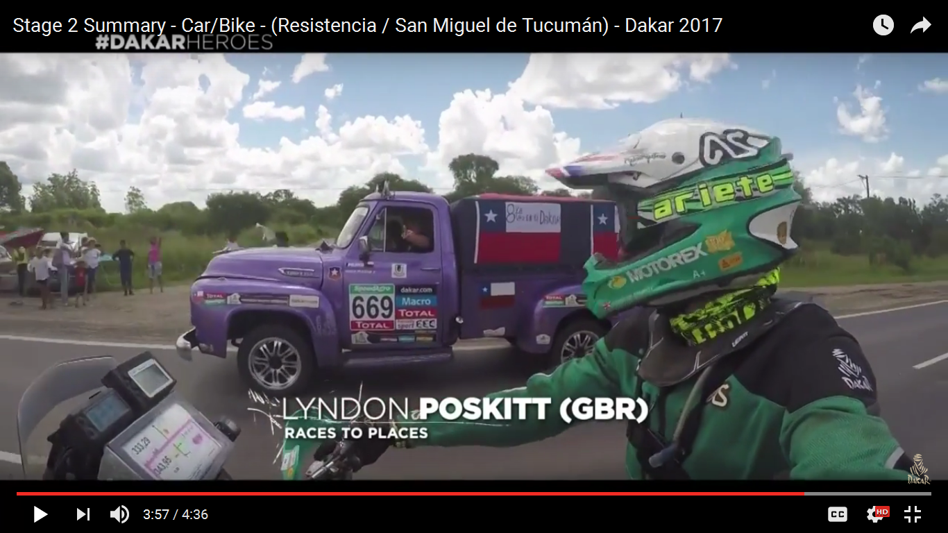 First, Lyndon got his own “moment of the day” on the official daily recap video (starting at 3m25sec). It seems they may end each days recap with more personal video clips, using hashtag #dakarheroes. This massively obviously increases anyone’s cache who might be featured, as it did for Tom Coronell and twin brother Tim.