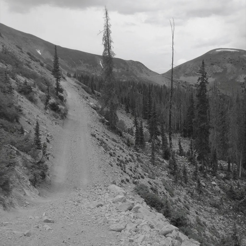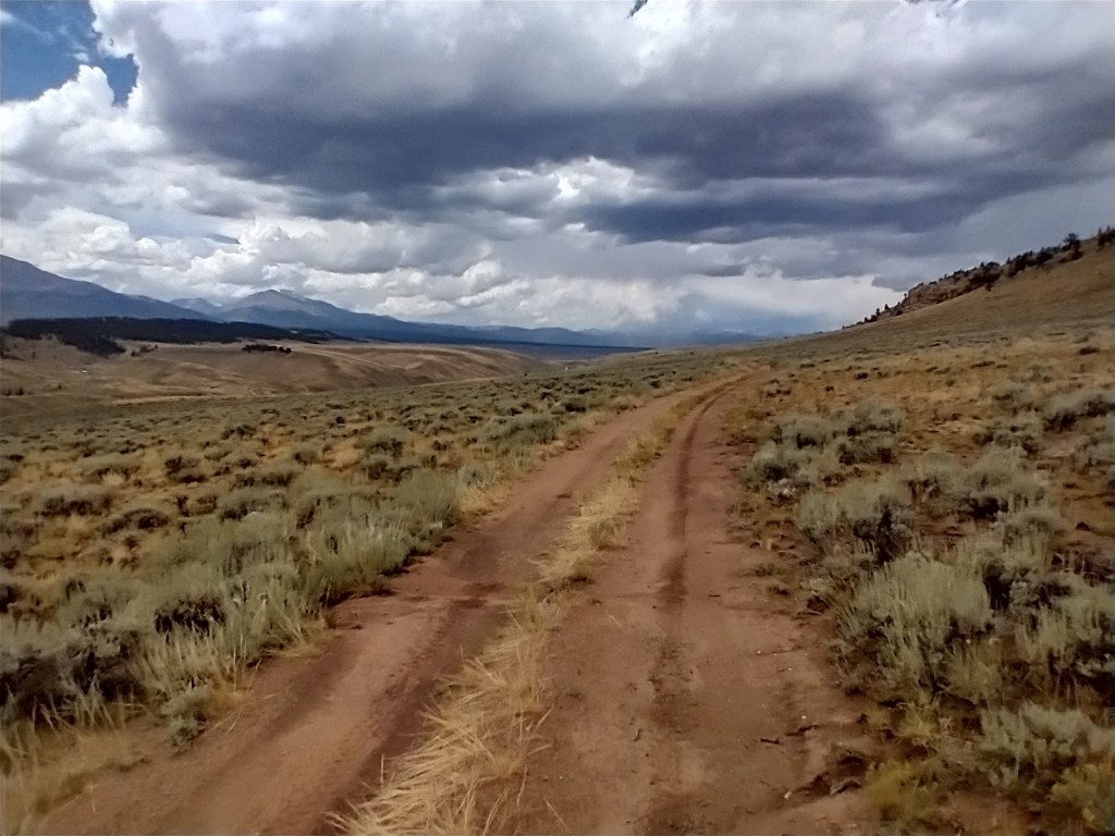 I hit rain here and there, but it was the last five miles that did the real damage. A massive storm cell was hanging right over Leadville. I tried to let it pass by riding an old stagecoach road adjacent to the highway. I came across a random cabin laying in ruins and wondered if it might have been a stagecoach stop. They tended to have one every 15mi or so at these altitudes, since a horse team couldn’t be expected to go more than 20miles before exhaustion and a long rest.