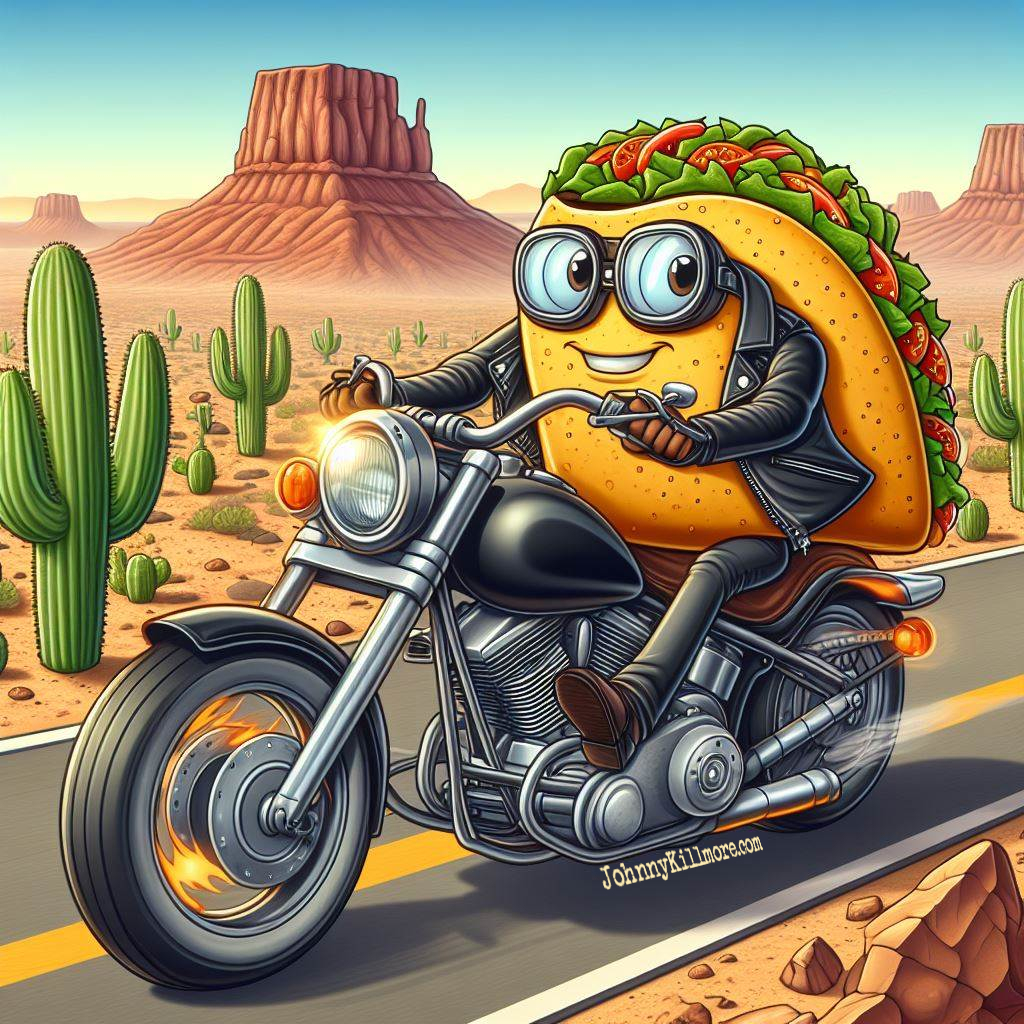 It also isn’t so great at following prompts, but if you give is a really “out there” idea it can truly inspire. Look at what it gave me when I asked for a taco riding a motorcycle: