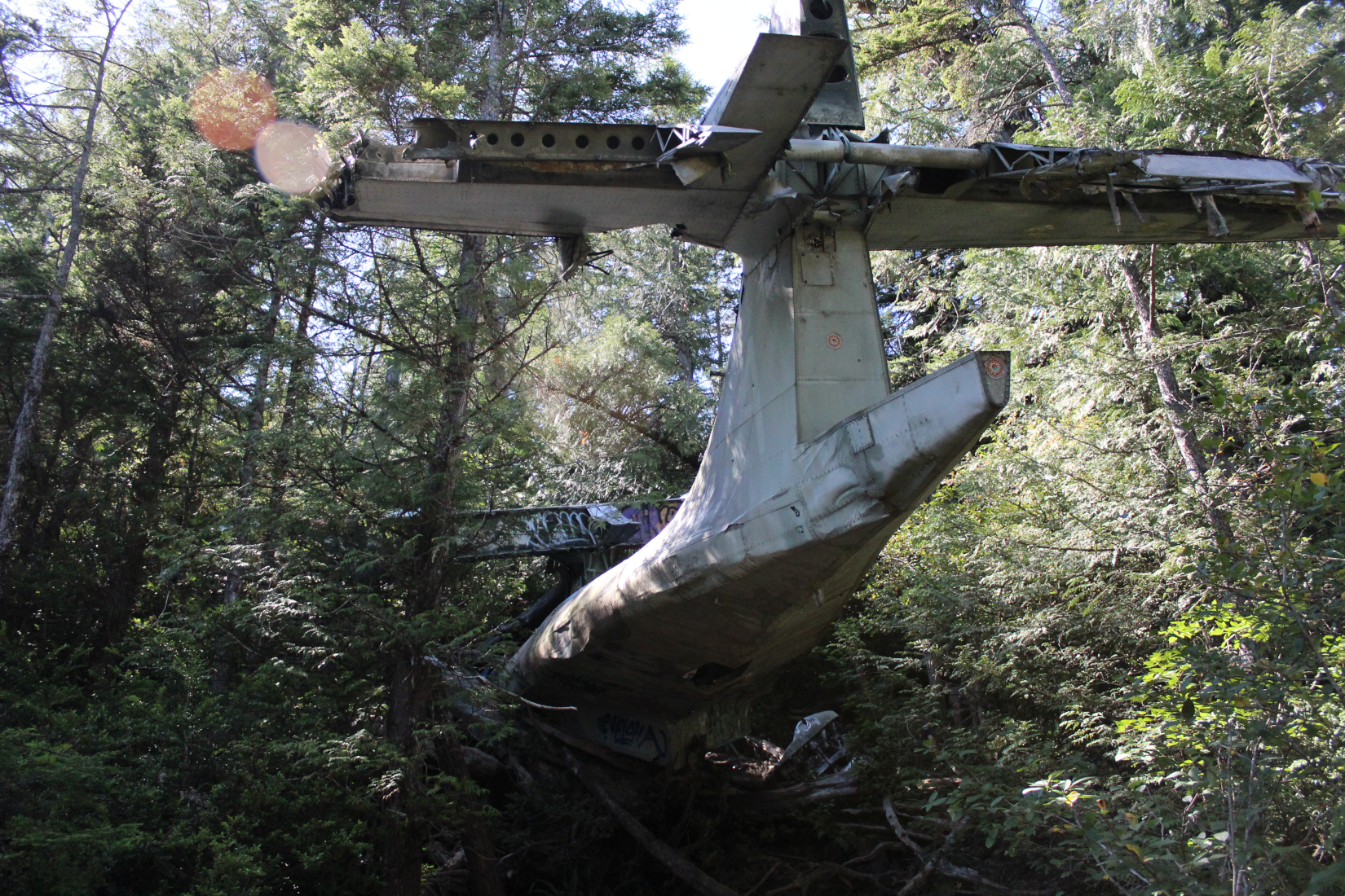 Once there the airplane is largely intact. The pilot made a real miracle happen, and the entire crew saved a lot of forest by extinguishing a small fire that started after the crash. Trees have grown up around it but you can probably still see the path of knocked-down trees from the air, even after more than 70 years.